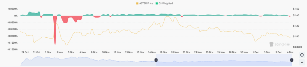 Aster has shown a slow-bleed motion through recent sessions. Neutral funding, compressed volatility, and persistent lower highs form a structure that demands resolution. Current conditions show a market awaiting a catalyst at a narrow inflection point.