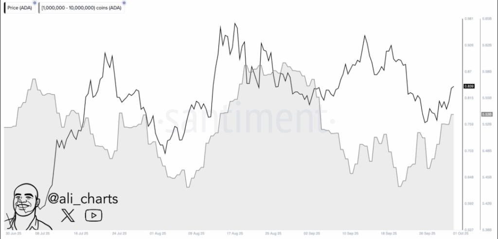Meanwhile, on-chain data from Santiment reveals a notable surge in ADA accumulation by large holders, commonly referred to as “whales.” Over the past week, these whales have acquired approximately 70 million ADA tokens. This sharp increase in holdings suggests that significant market players are betting on ADA’s future growth. The recent price dip to $0.75 seems to have presented an attractive buying opportunity for these large investors, adding weight to the growing bullish sentiment around the Cardano token.