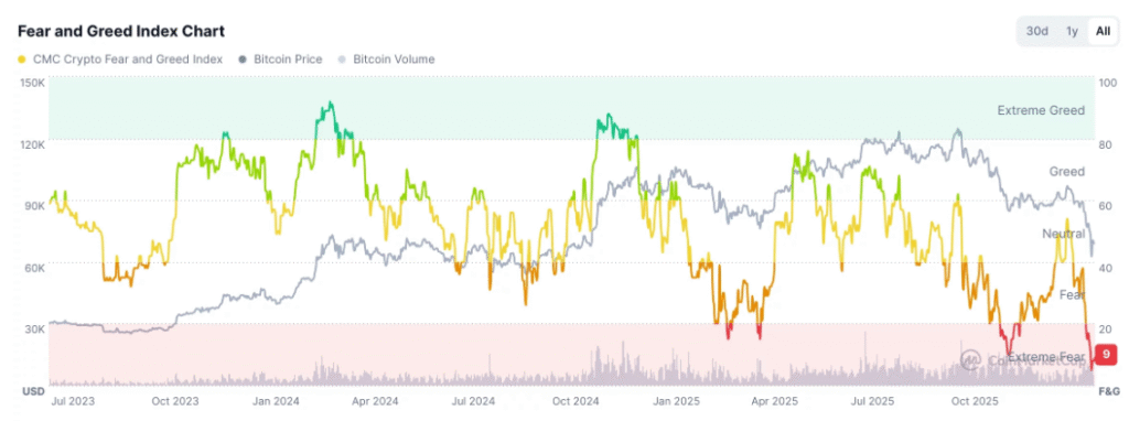- Crypto Fear and Greed Index remains in the extreme fear zone, with futures open interest continuing to decline.