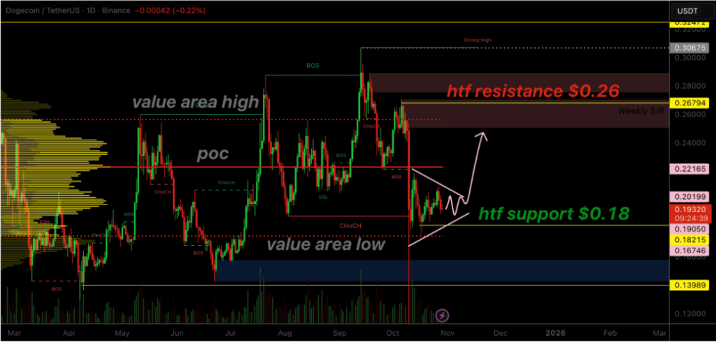 Maintaining the $0.18 level remains crucial for preserving Dogecoin’s constructive market setup. A daily close below this area would weaken the bullish bias, possibly leading to a temporary correction before a new recovery attempt. However, sustained stability around this support, combined with higher trading volume, would strengthen the case for an upward continuation.