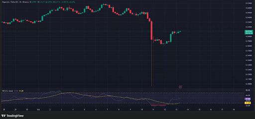 On the four-hour chart, Dogecoin has developed a bullish pennant structure, typically formed by sharp upward movement followed by brief consolidation. This formation often precedes another leg higher if buying momentum holds. Technical indicators reinforce the optimistic outlook. The Moving Average Convergence Divergence (MACD) shows a positive crossover, while the Relative Strength Index (RSI) remains in neutral territory, suggesting room for additional upside.