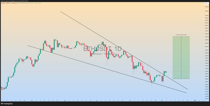 Ethereum price analysis centers on the falling wedge breakout noted by traders. The pattern shows a clean structure with lower highs and lower lows before upward expansion. Clifton Fx stated that the wedge break has been confirmed and that Ethereum may work toward higher zones if momentum holds.