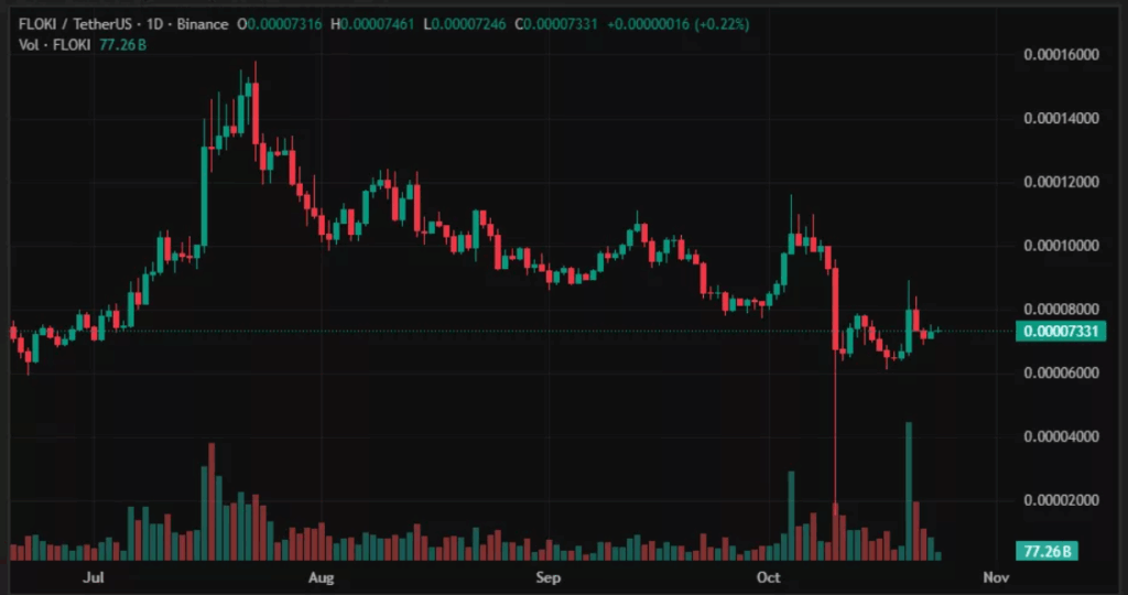 Floki, the meme-inspired cryptocurrency, is attempting to reshape its narrative after its early days as just another token riding the Dogecoin wave. Currently trading between $0.000073 and $0.00009, the token is working towards a more substantial presence in the digital ecosystem. This shift is marked by recent developments, including the introduction of the Valour FLOKI exchange-traded product (ETP) in Europe, setting the token apart as the first on the BNB Chain to receive regulated market exposure. These steps have reignited optimism in its future, though the road ahead remains uncertain.