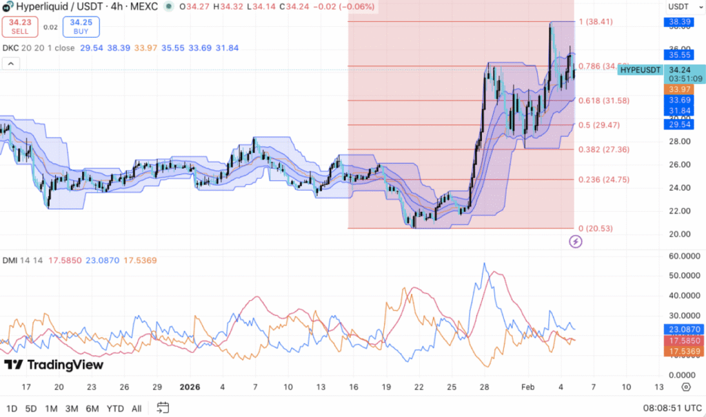 - HYPE price maintains a short-term uptrend above key Fibonacci levels with widening volatility indicators backing the momentum.