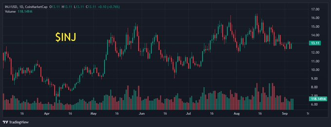 Injective Protocol ($INJ) is consolidating near the $13 level, trading between firm support and resistance zones as market participants await direction.