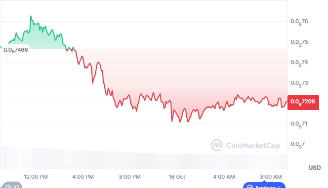According to CoinMarketCap data PEPE started in the last session close to $0.00007466 and then steadily retreated to the level of approximately at $0.0000719. This drop was coupled with a general fall in participation, although the feeling of the community is good. About 87 percent of the electorate remains on the bullish side implying that they believe present weakness is corrective rather than structural.