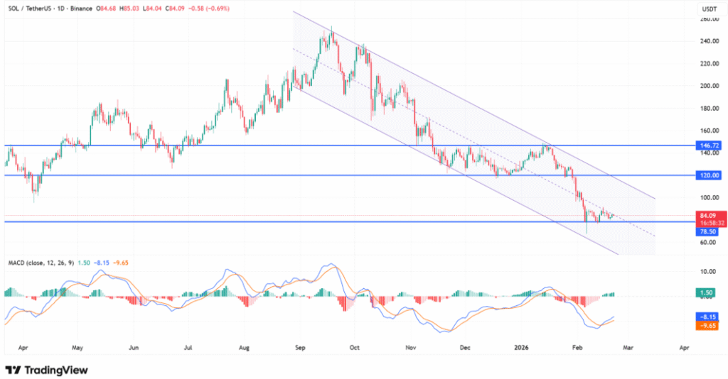The $10.26 million purchase, improving momentum signals, and steady exchange outflows collectively point to strengthening accumulation beneath the surface. Nevertheless, SOL remains confined within its descending channel, and structural change requires a sustained break above $120 while holding $78.50 support.