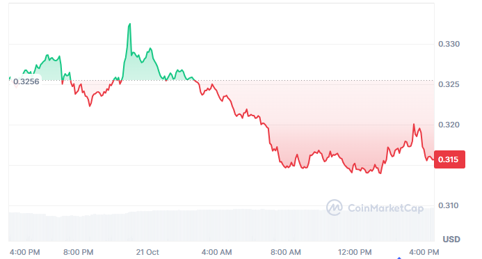 Current market information shows Stellar at approximately $0.3145, 4.2% lower day to date compared to the last session. Price action revealed a short-lived spike to $0.3314 but later declined, reaffirming continued selling pressure at higher levels. 24-hour turnover of $178.4 million shows moderate interest, which shows weak interest among dealers.