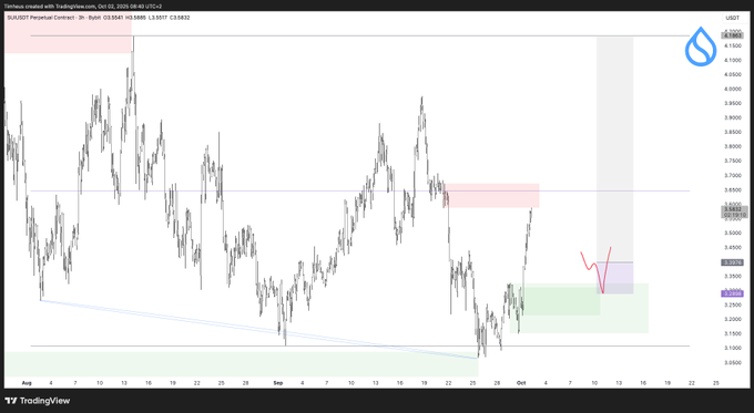 Tim Heus (@timheus) added that the monthly chart low looks attractive, and any retest could offer a long entry. At present, Sui trades at $3.59 with a $1.52 billion daily volume, up 10.51% over 24 hours.