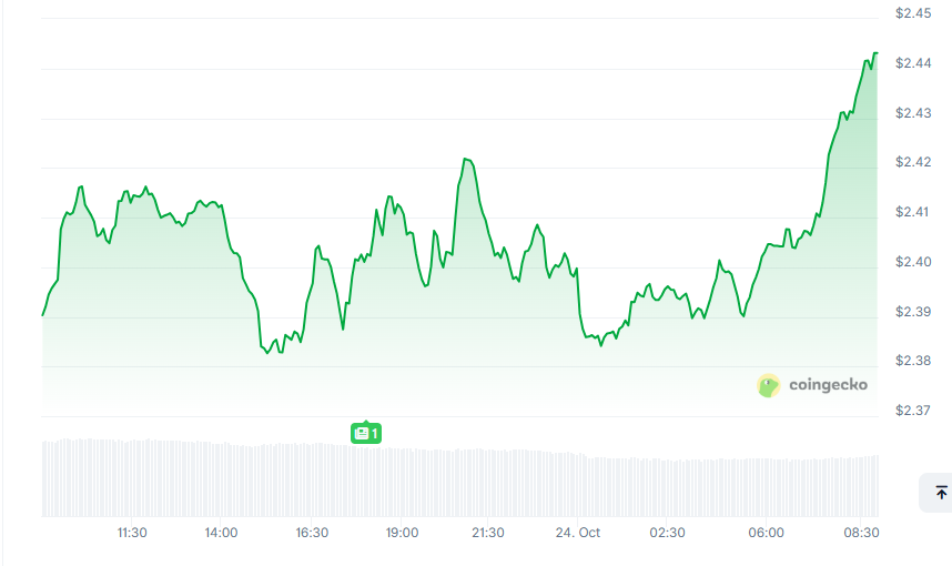 - The price currently trades near $2.44, marking renewed strength after multiple failed breakdown attempts.