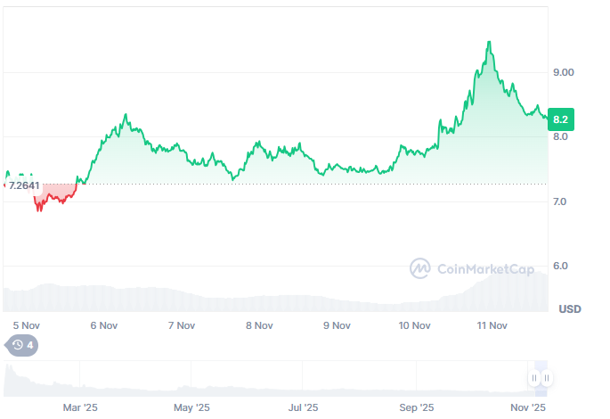 Measured projections from the pattern point toward an aggressive upside of nearly 175% from the breakout level. If sustained, this move could place the next resistance near the $18–$20 range, aligning with previous liquidity areas where traders might begin scaling out.
