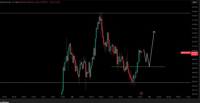 • XMR maintains steady demand as buyers defend the $406 support area and prevent deeper price retracements.
