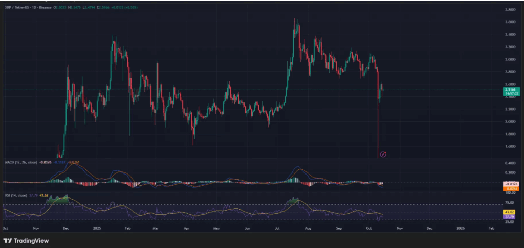 XRP plunged after breaking below the base of a descending triangle on the daily chart. That pattern signals sellers are dominating and heightens the chance of further declines. Whales appear to confirm the trend, offloading more than 2.23 billion XRP since the U.S. announced fresh tariffs on Chinese goods.