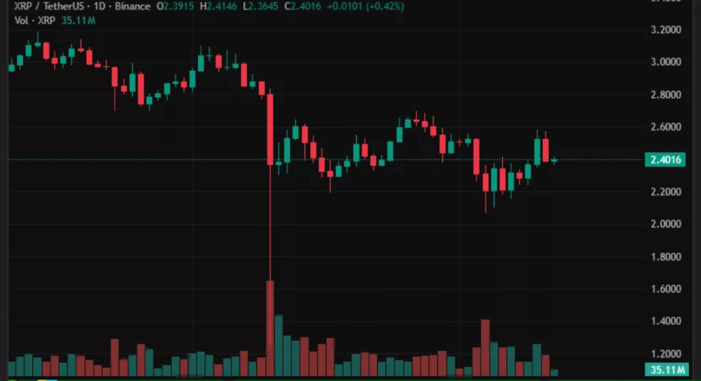 XRP’s price has remained around the $2.40 mark, showing signs of short-term stability. However, the broader cryptocurrency market is witnessing a shift in trader attention toward high-beta assets, with AI tokens and meme coins capturing stronger momentum. This trend leaves XRP lagging, despite its solid position as a large-cap altcoin. XRP’s price has struggled to break out of its range-bound structure, and this may continue unless the rotation in liquidity reverses.