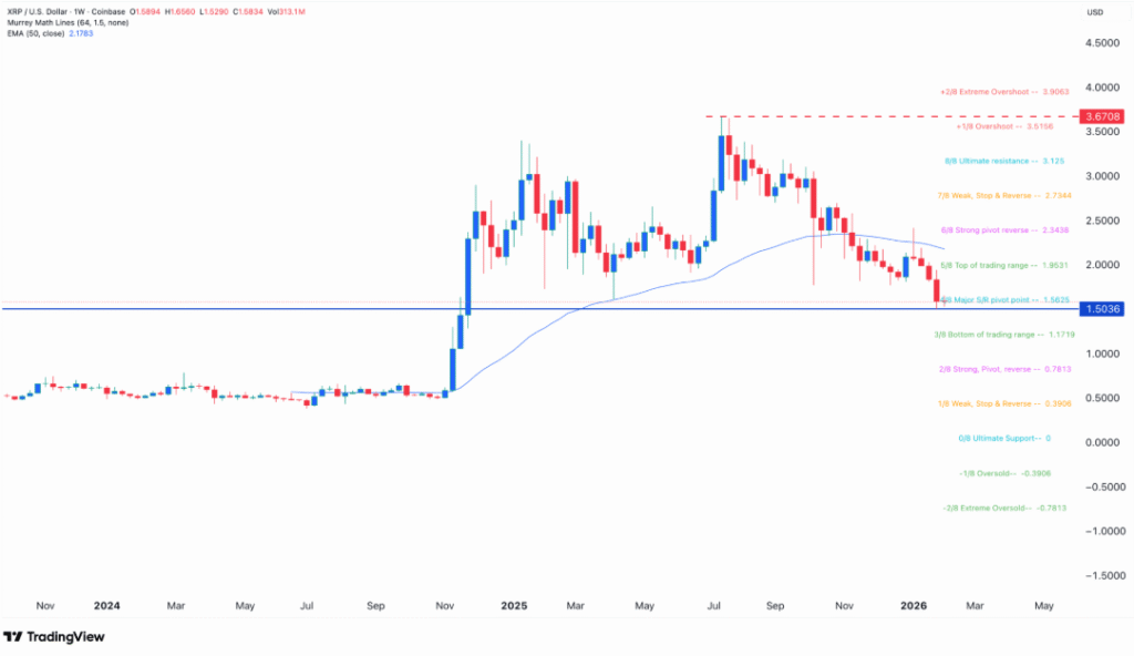 The technical analysis of XRP’s price chart shows a continued downtrend, with the coin having fallen for five consecutive weeks. Currently, XRP is hovering near a critical support level, with the risk of breaking below the $1 psychological price level. If the price drops further, it could hit the $0.7813 level, marking a more significant downturn for XRP.