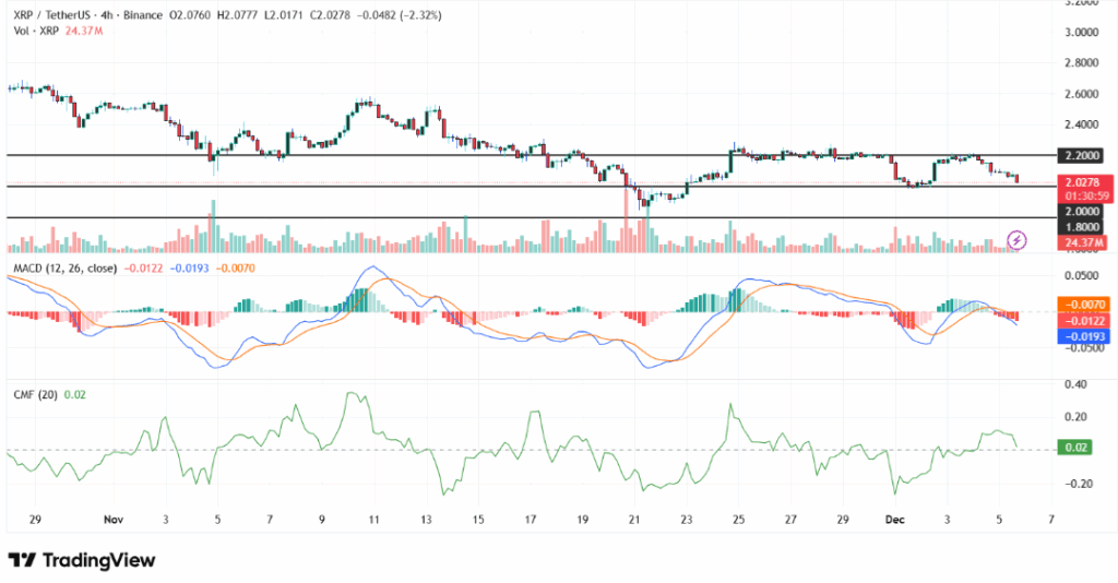 At present, XRP’s price hovers just above the $2.00 mark, with resistance seen around the $2.50 level. The coin has maintained a relatively stable range, fluctuating between well-defined support at $2.00 and resistance at $2.50. If XRP holds above the $2.00 level, it may attempt a rebound towards $2.20. However, any drop below $2.00 could signal a deeper decline, with the next key support level around $1.80.